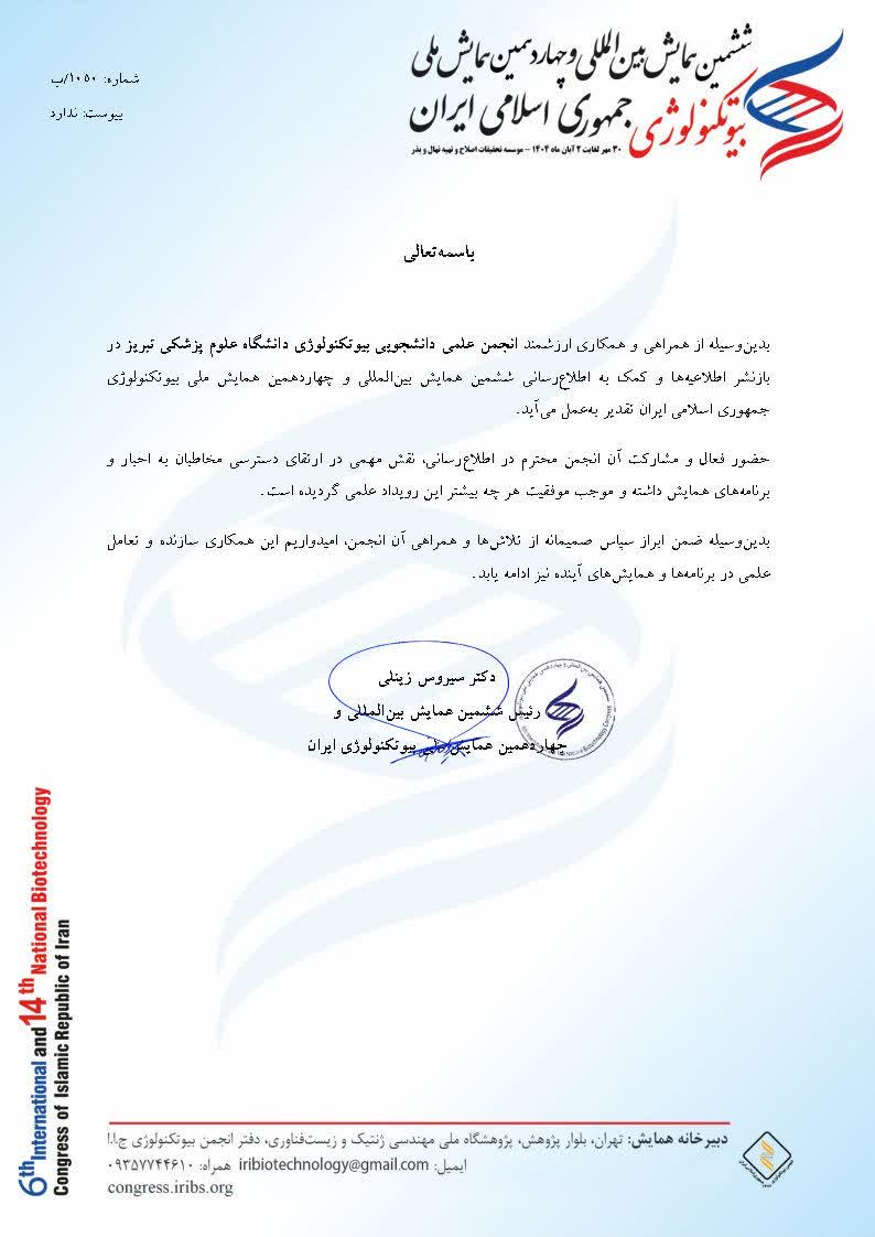 تبریک به انجمن بیوتکنولوژی دانشگاه علوم پزشکی تبریز
