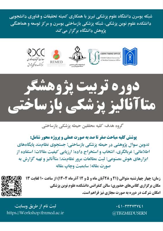 تاریخ انتشار : یکشنبه ۲۷ مهر ۱۴۰۴ تعداد بازدید کنندگان خبر : 87 زمان مطالعه : 1 دقیقه دوره تربیت پژوهشگر متاآنالیز پزشکی بازساختی کد خبر : 96200 کپی تصاویر ارسال نظر ثبت