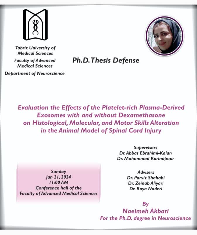 دفاع پایان نامه مقطع دکتری تخصصی گروه علوم اعصاب . کد خبر : 58802 کپی کلمات کلیدی : اطلاعيه برگزاري جلسه دفاعيه جلسات دفاعيه پايان نامه ها دفاعیه پایان نامه