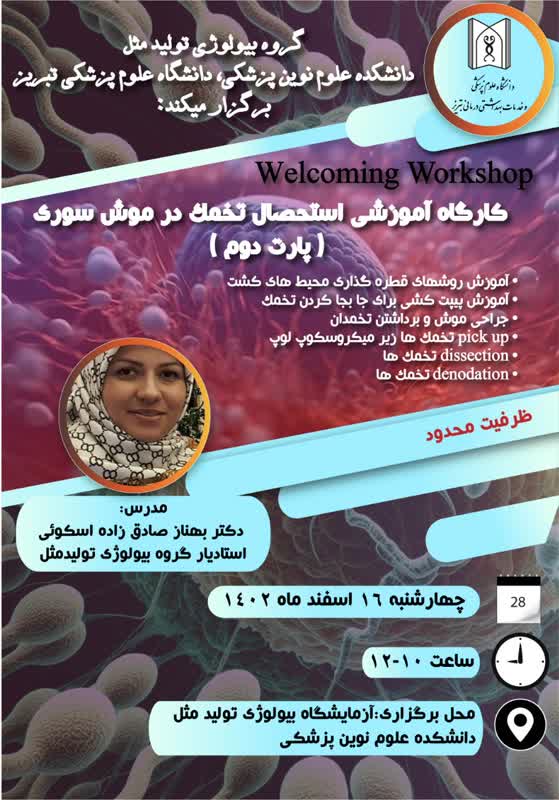 کارگاه آموزشی استحصال تخمک درموش سوری (پارت دوم) گروه بیولوژی تولید مثل برگزارمیکند: کد خبر : 58816 کپی کلمات کلیدی : کارگاه بیولوژی تولید مثل استحصال تخمک