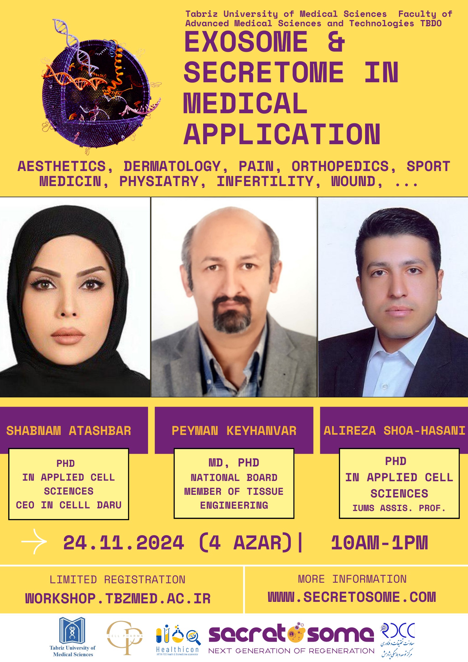 دفتر توسعه فناوری کسب و کار دانشکده علوم و فناوریهای نوین پزشکی اقدام به برگزاری برگزاری کارگاه کاربردهای پزشکی و بالینی Exosome و Secretome نمودهاند.