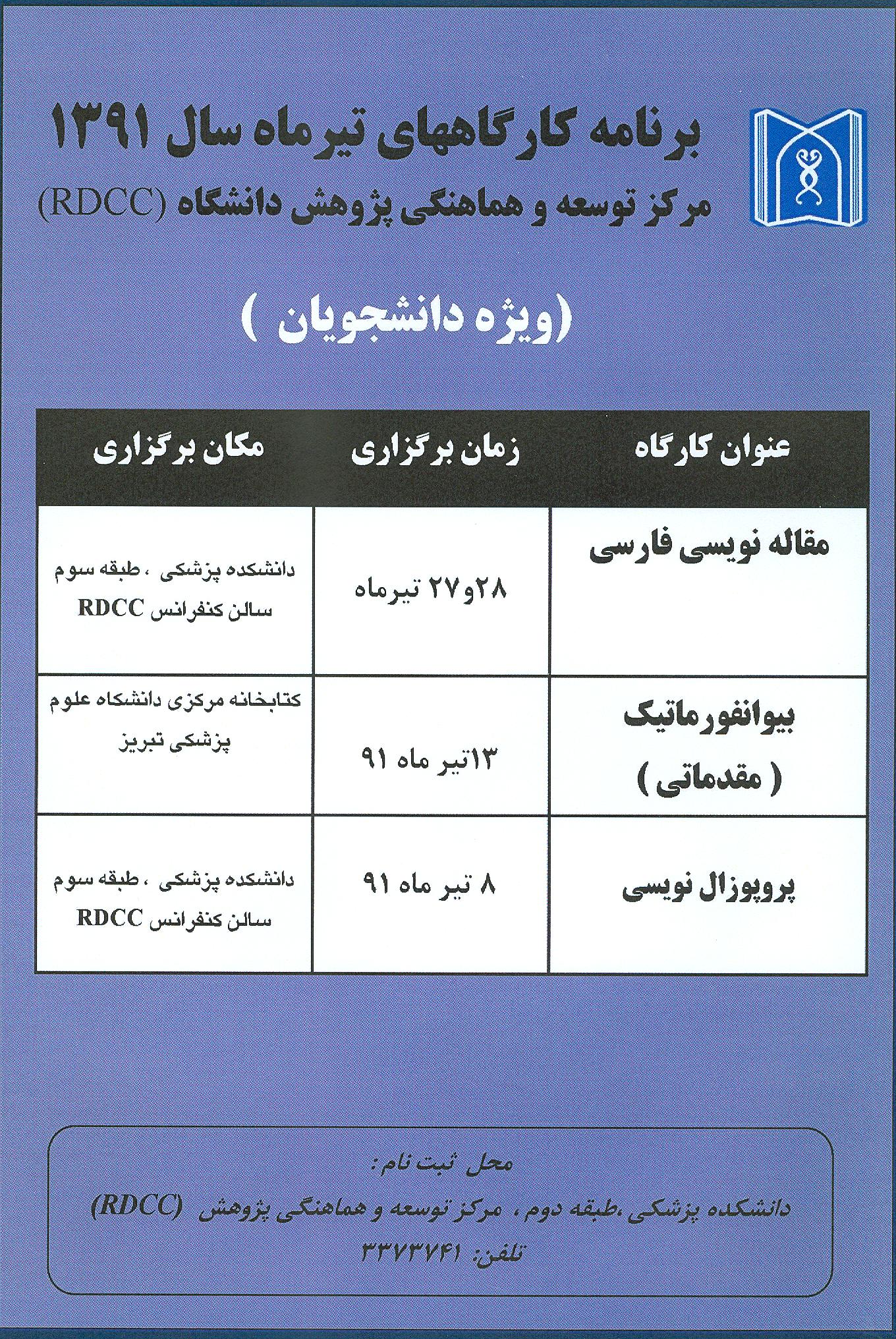 برنامه کارگاههای تیر ماه سال 91