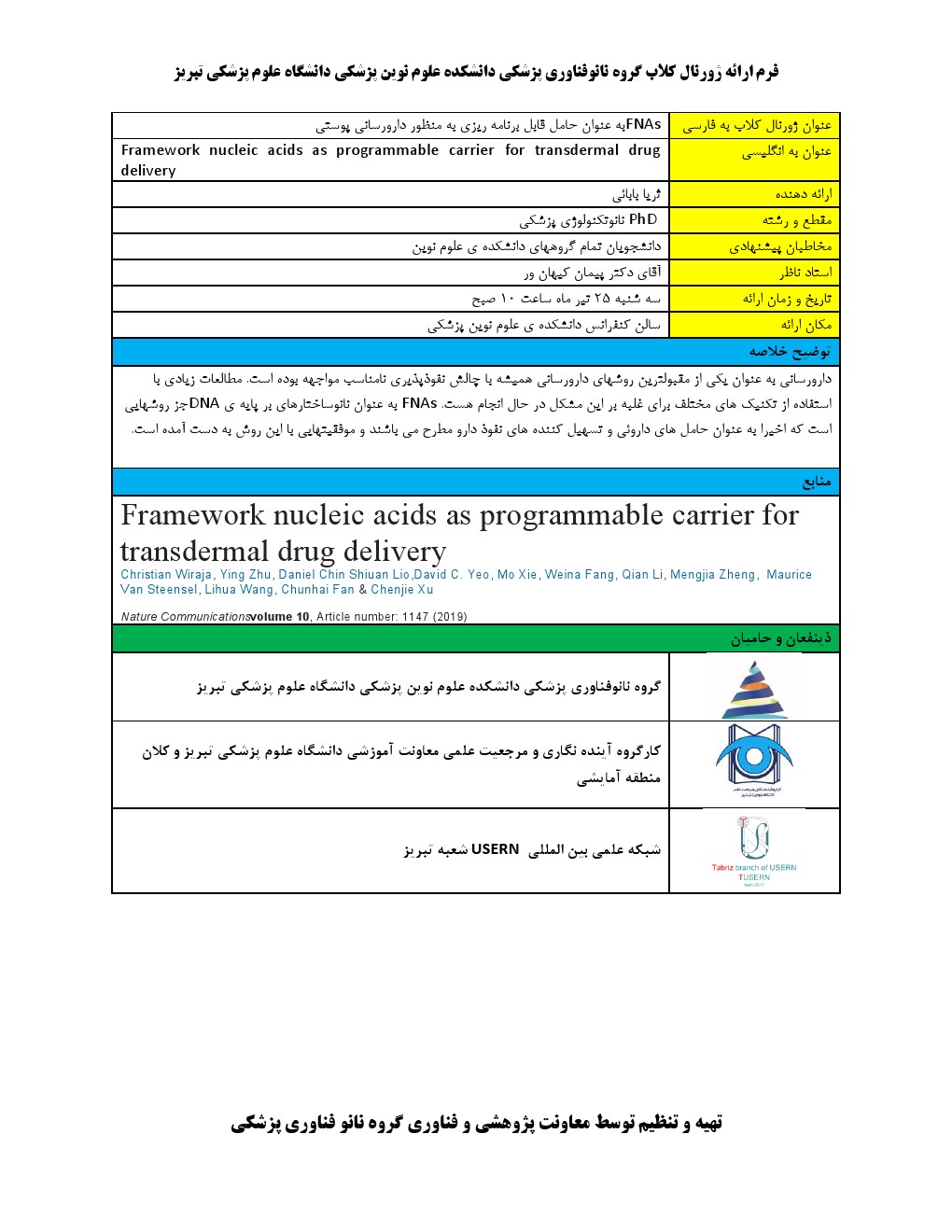 ژورنال کلاب گروه نانوتکنولوژی پزشکی ارائه شده توسط خانم ثریا بابایی کد خبر : 58319 کپی کلمات کلیدی : ژورنال کلاب نانوتكنولوژی پزشكی پیمان کیهانور