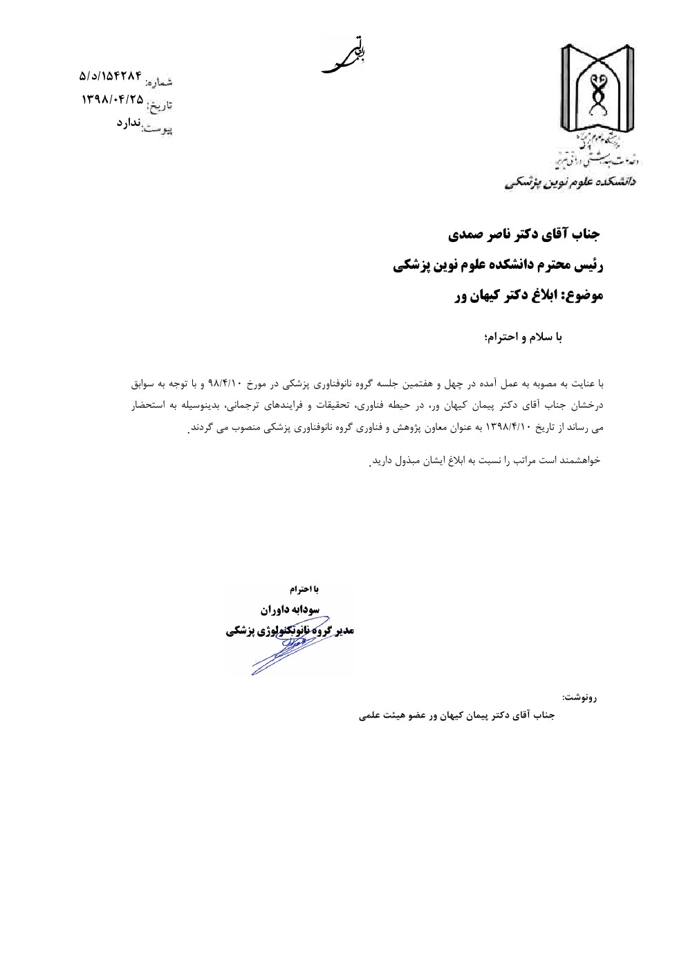 ابلاغ آقای دکتر پیمان کیهان ور گروه نانوتکنولوژی پزشکی کد خبر : 58320 کپی کلمات کلیدی : ابلاغ نانوتكنولوژی پزشكی دکتر کیهان ور