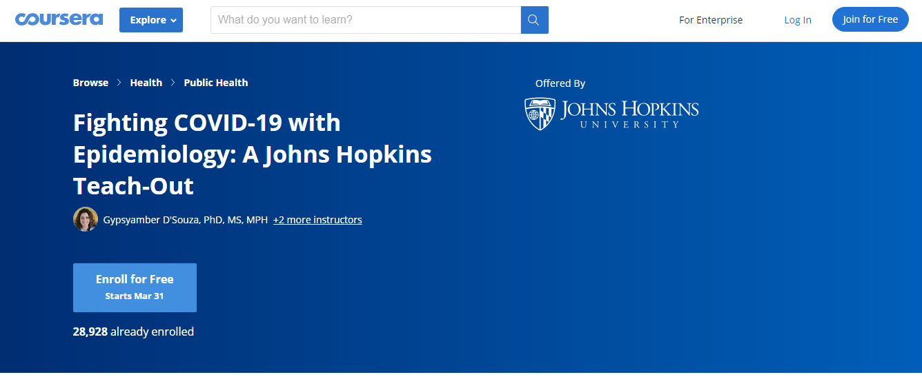 اساتید گرانقدر، همکاران ارجمند ، دانشجویان عزیز کورس مجازی درباره بیماری کرونا توسط دانشگاه جان هاپکینز از امروز شروع می شود علاقمندان می توانند در این دوره آموزشی شرکت نمایند.در ضمن برای وارد شدن نیاز به استفاده از فیلتر شکن می باشد. با امید به اینکه برای عزیزان مفید باشد.