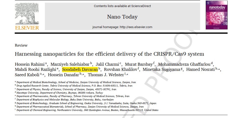 چاپ مقاله با IF 17 در مجله نانو تودی را خدمت شما و جامعه علمی تبریک و تهنیت عرض مینماییم.