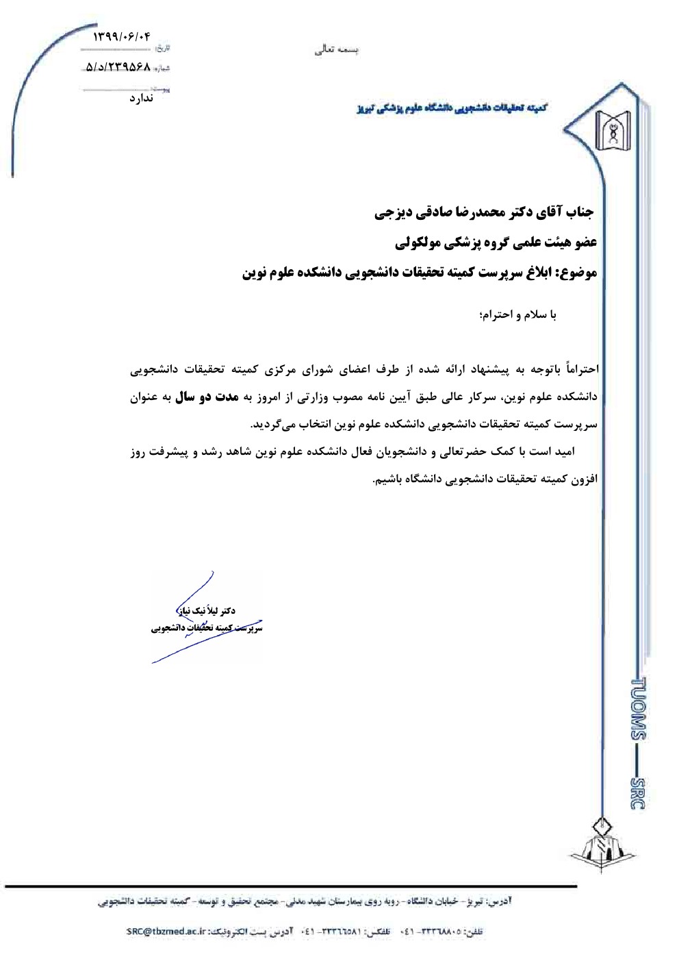 جناب آقای دکتر محمد رضا صادقی تبریک انتصاب جناب آقای دکتر محمد رضا صادقی انتصاب جنابعالی به سمت سرپرست کمیته تحقیقات دانشجویی دانشکده علوم نوین پزشکی را خدمت شما تبریک عرض نموده و از خداوند منان توفیقات روز افزون شما را خواستاریم. کد خبر : 58414 کپی کلمات کلیدی : دانشکده علوم نوین پزشکی کمیته های تحقیقات دانشجویی دکتر صادقی