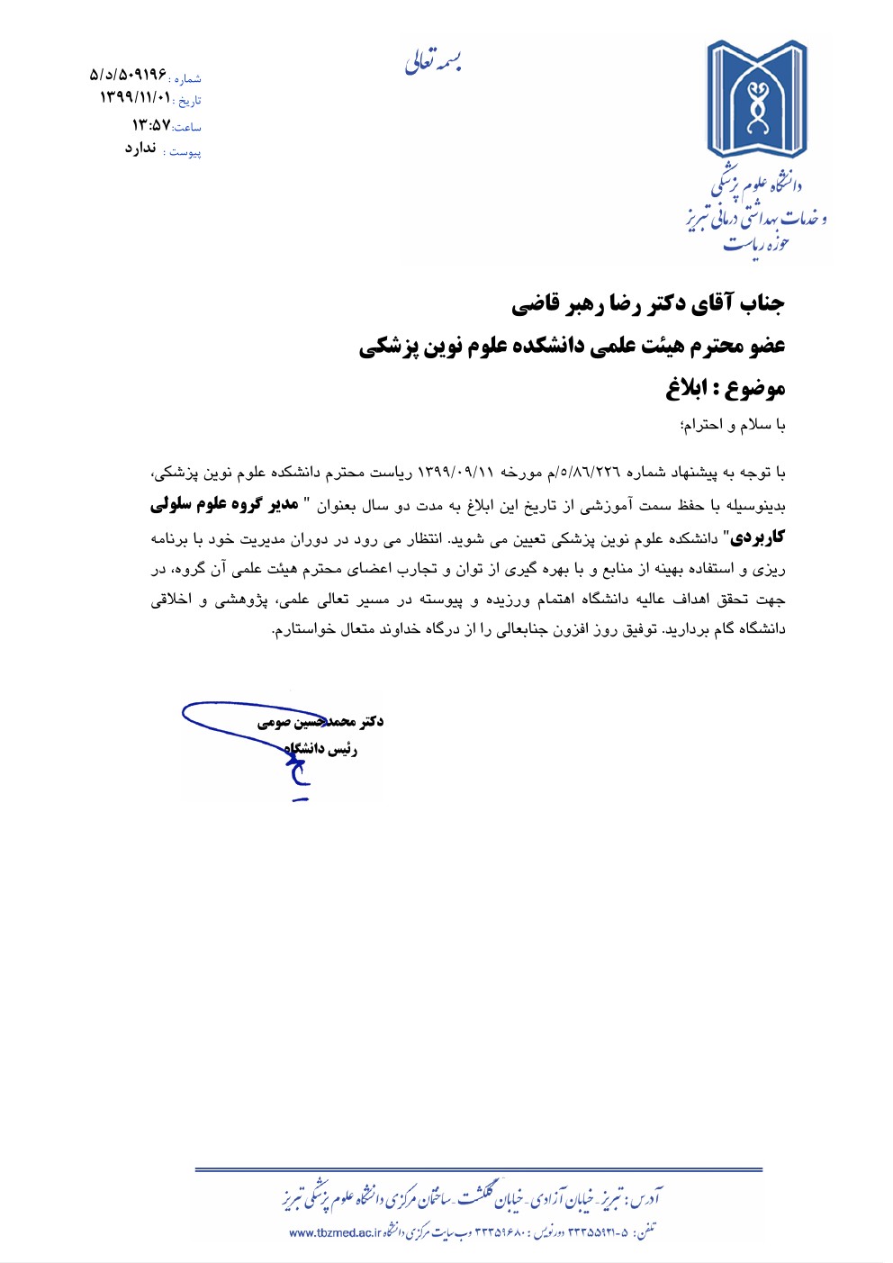 جناب آقای دکتر رضا رهبر تبریک انتصاب جناب آقای دکتر رضا رهبر انتصاب جنابعالی را به سمت مدیر گروه علوم سلولی و کاربردی خدمت شما تبریک عرض نموده و از خداوند منان توفیقات روز افزون شما را خواستاریم. کد خبر : 58435 کپی کلمات کلیدی : مدیر گروه علوم سلولی وکاربردی دکتر رضا رهبرقاضی