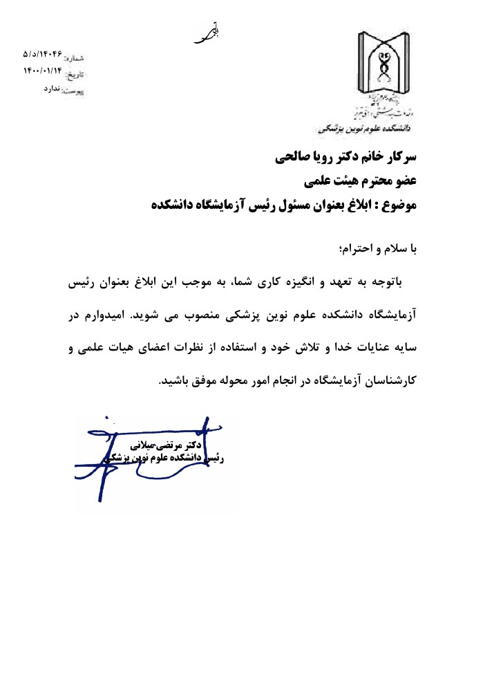 تبریک و تهنیت سرکار خانم دکتر رویا صالحی سرکار خانم دکتر رویا صالحی انتخاب جنابعالی را بعنوان ریاست آزمایشگاههای دانشکده خدمت شما تبریک عرض نموده و توفیقات روزافزون جنابعالی را از درگاه خداوند متعال خواستاریم. کد خبر : 58450 کپی کلمات کلیدی : واحد آزمایشگاه انتصاب دکتر رویا صالحی