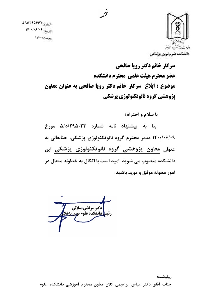 تبریک و تهنیت انتصاب سرکار خانم دکتر رویا صالحی سرکار خانم دکتر رویا صالحی انتصاب جنابعالی به عنوان معاون پژوهشی گروه نانوتکنولوژی پزشکی را خدمت جنابعالی تبریک عرض نموده و از خداوند متعال توفیقات روزافزون جنابعالی را خواستاریم. کد خبر : 58472 کپی کلمات کلیدی : معاون پژوهشی دکتر رویا صالحی گروه نانوتکنولوژی پزشکی