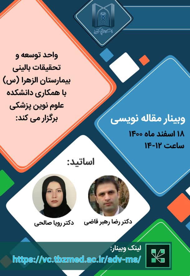 وبینار مقاله نویسی 18 اسفند ماه کد خبر : 58515 کپی کلمات کلیدی : کارگاه مقاله نویسی وبینار وبینار مقاله نویسی