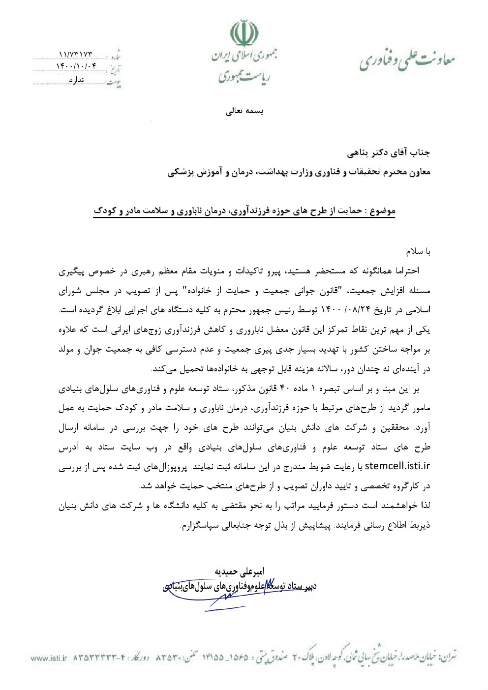 حمایت از طرح های حوزه فرزندآوری، درمان ناباوری