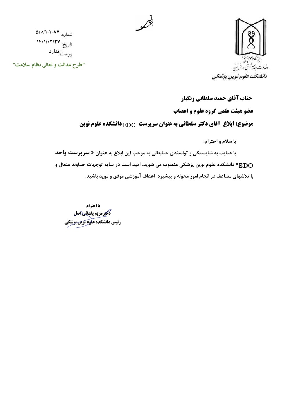 انتخاب آقای دکتر سلطانی به عنوان سرپرست جدید EDO . کد خبر : 58536 کپی کلمات کلیدی : ابلاغ EDO دکتر حمید سلطانی