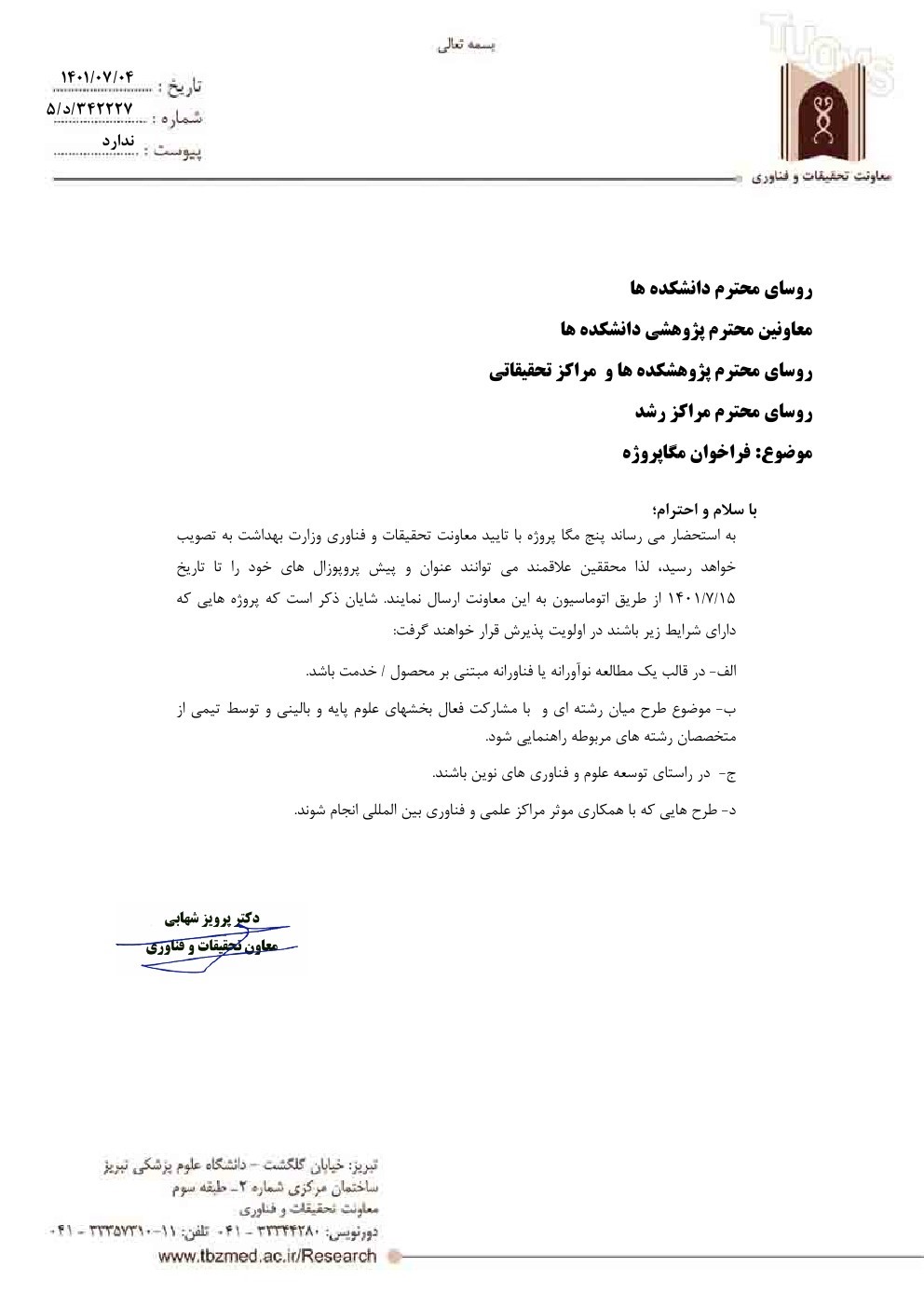 تاریخ انتشار : دوشنبه ۴ مهر ۱۴۰۱ تعداد بازدید کنندگان خبر : 59 زمان مطالعه : 0 دقیقه فراخوان مگا پروژه . کد خبر : 58581 کپی کلمات کلیدی : فراخوان فناوری های نوین مگا پروژه ارسال نظر ثبت