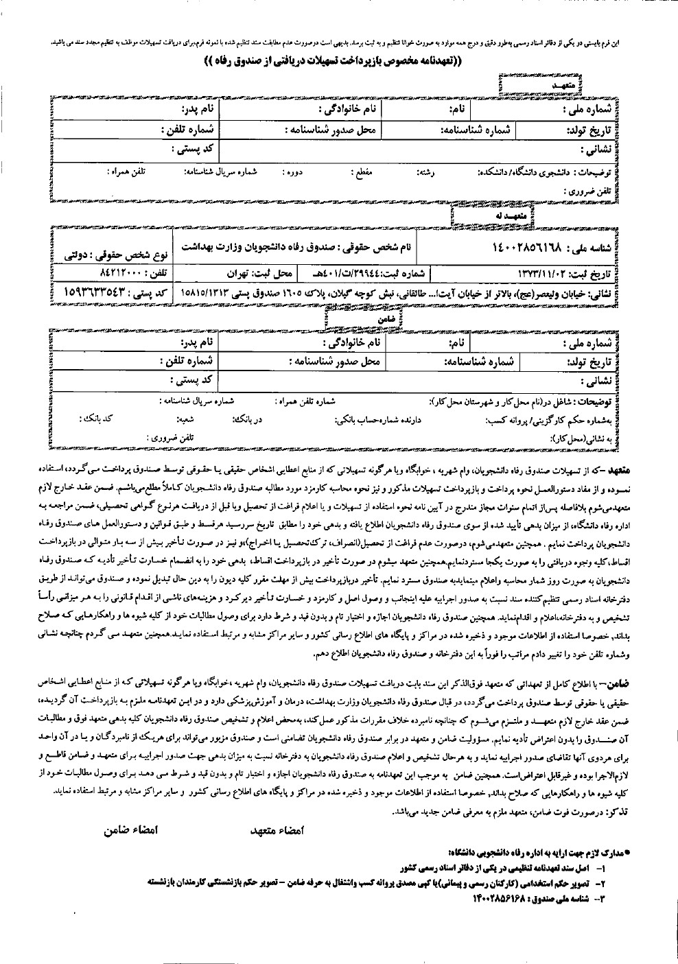 تعهد نامه مخصوص بازپرداخت تسهیلات دریافتی از صندوق رفاه