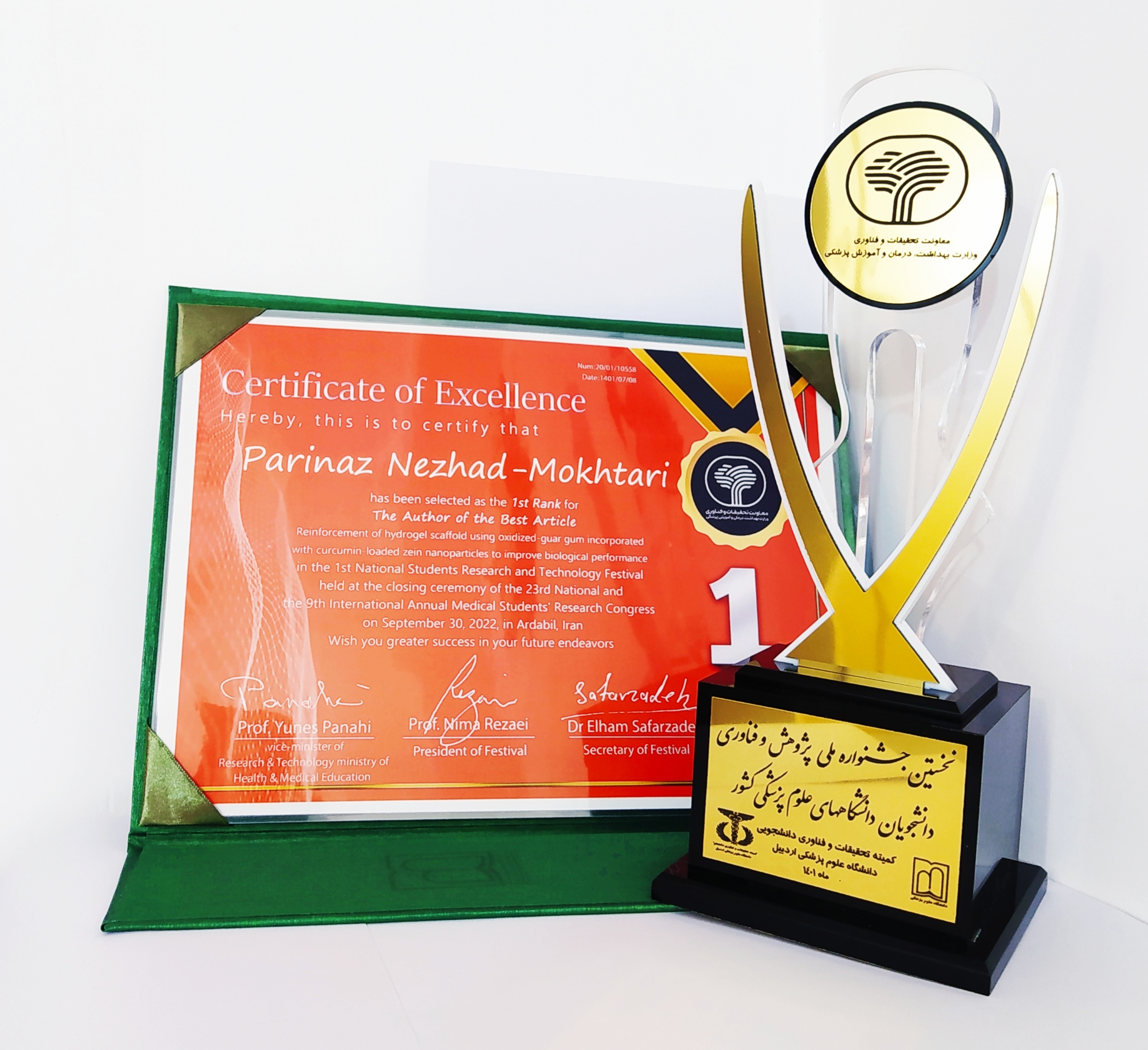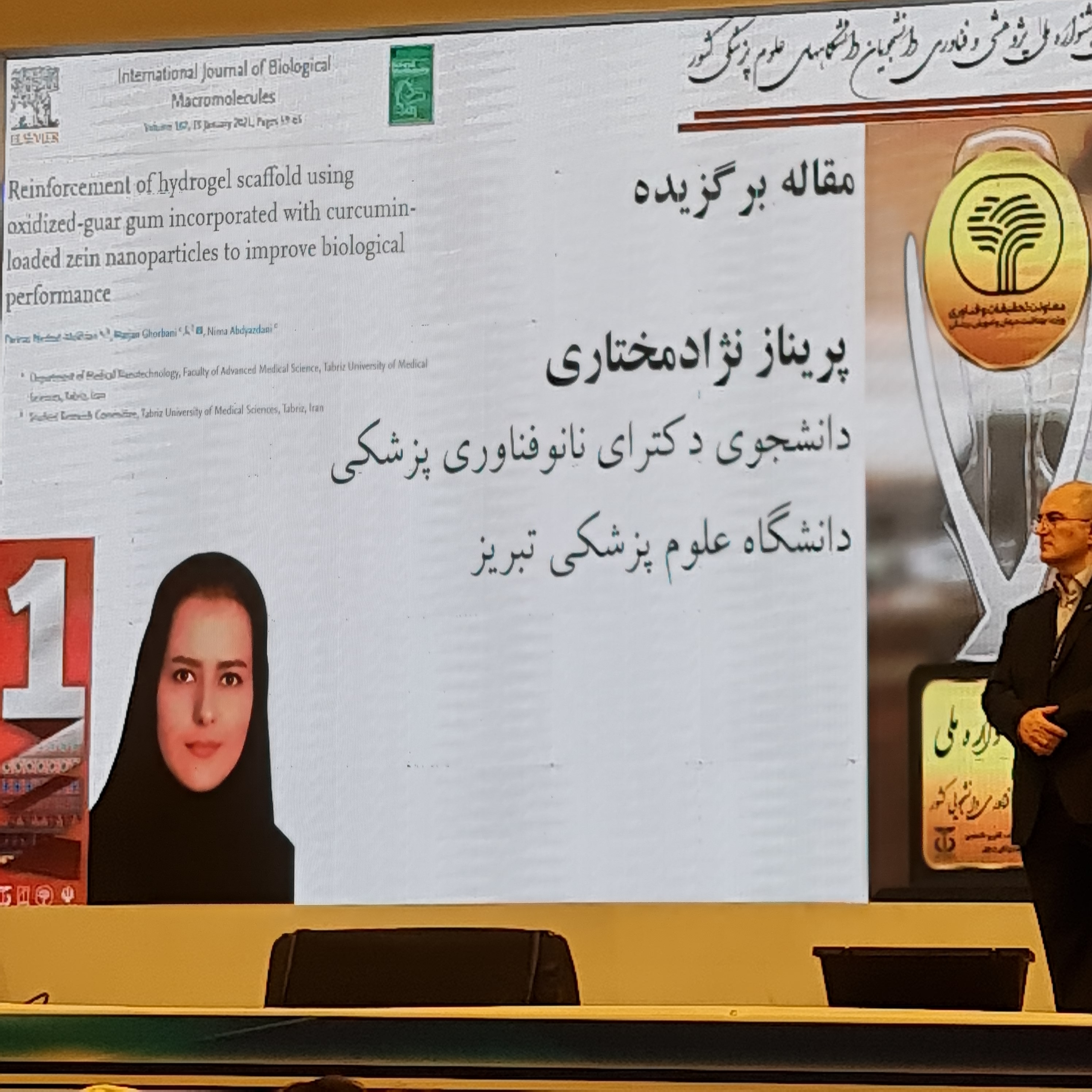 خانم پریناز نژاد مختاری دانشجوی مقطع دکتری تخصصی رشته نانوفناوری پزشکی در نخستین جشنواره ملی پژوهش و فناوری دانشجویان دانشگاههای علوم پزشکی کشور افتخار دیگری کسب نمودند.