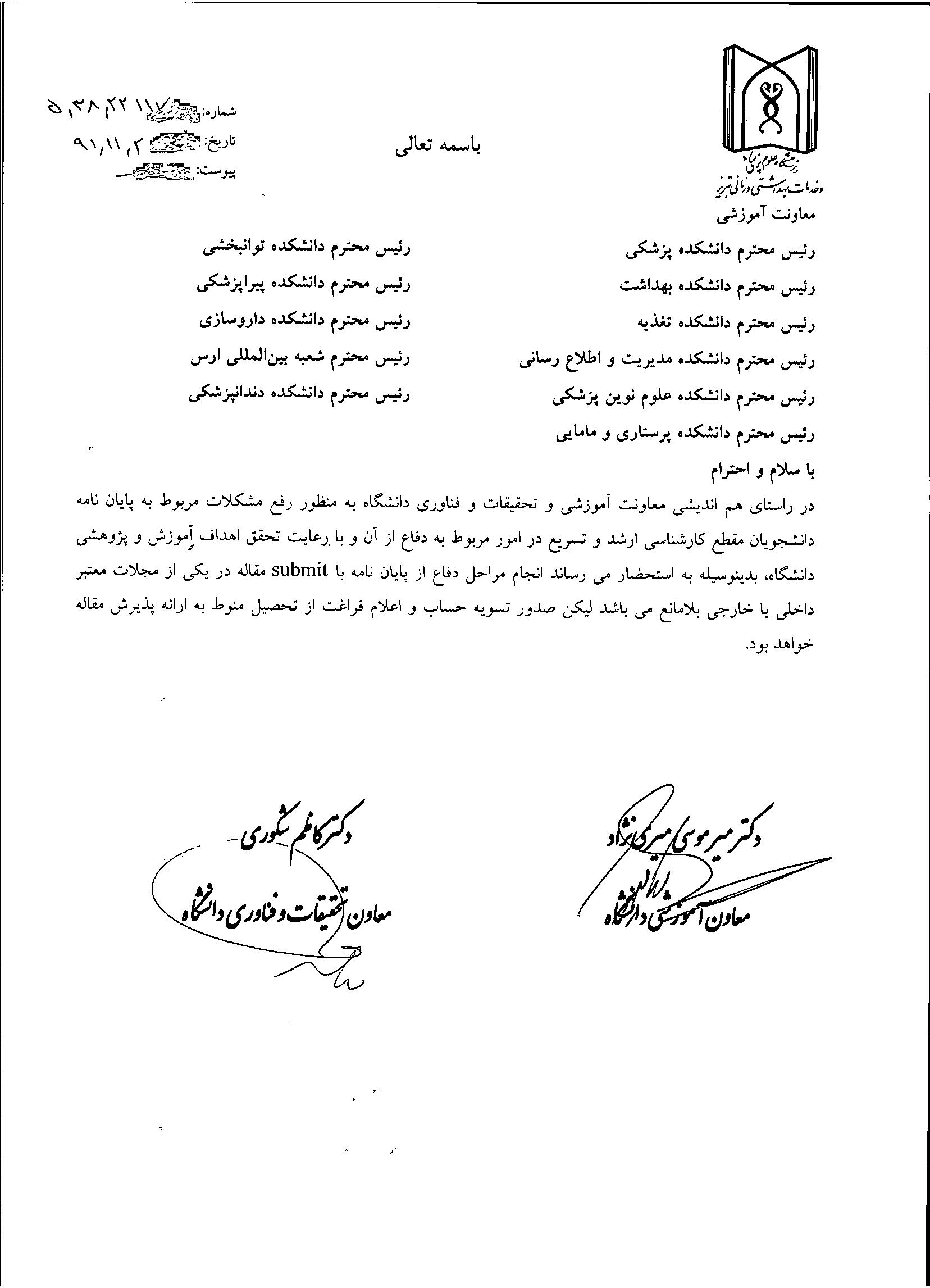 اصلاحیه اطلاعیه حداقل های لازم از نظر انتشار مقاله برای پایان نامه های دوره های تکمیلی...