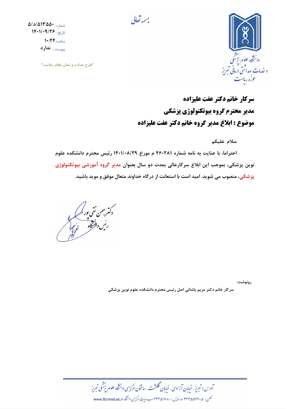 ابلاغ مدیر محترم گروه بیوتکنولوژی پزشکی . کد خبر : 58640 کپی کلمات کلیدی : ابلاغ مدیر گروه گروه بیوتکنولوژی پزشکی