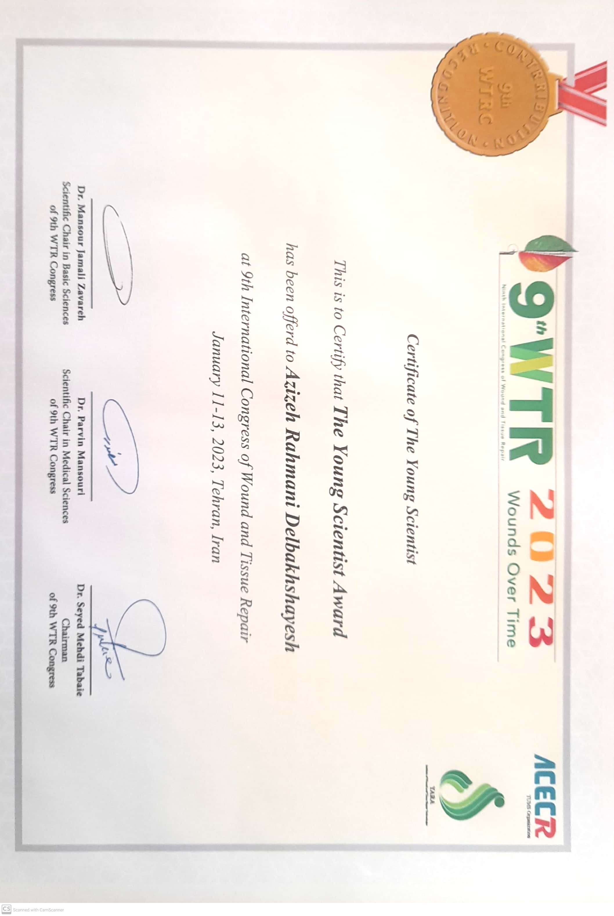 خانم دکتر عزیزه رحمانی دل استادیار گروه آموزشی مهندسی بافت دانشکده علوم نوین پزشکی موفق به اخذ جایزه دانشمند جوان در نهمین کنگره بین المللی زخم و ترمیم بافت شدند.