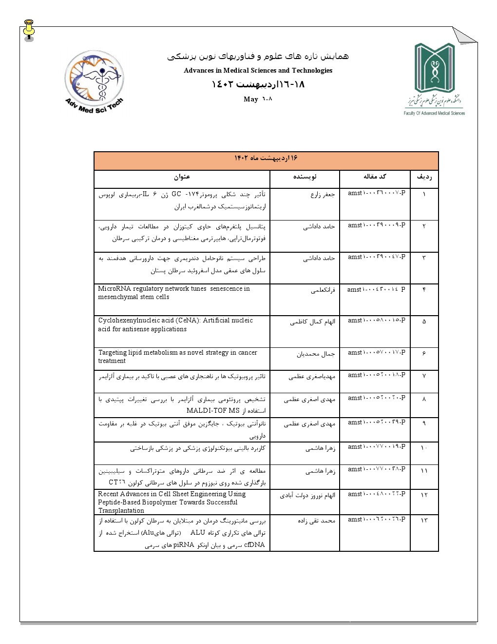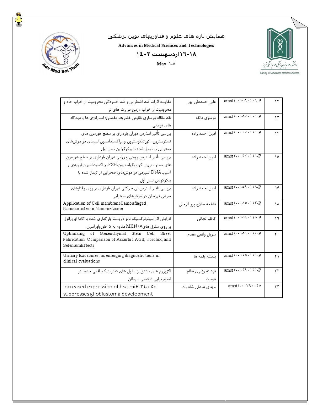 جدول زمان بندی پوسترهای همایش و جایزه پوستر برگزیده . پوسترهای همایش طبق برنامه زمانبندی شده در اندازه 90*60 پرینت و در محل نصب گردد. به بهترین پوستر برگزیده از نظر داوران جایزه ای از طرف کمیته تحقیقات دانشجویی دانشگاه اعطا می گردد. کد خبر : 58680 کپی کلمات کلیدی : همایش پوستر و سخنرانی همایش فناوریهای نوین