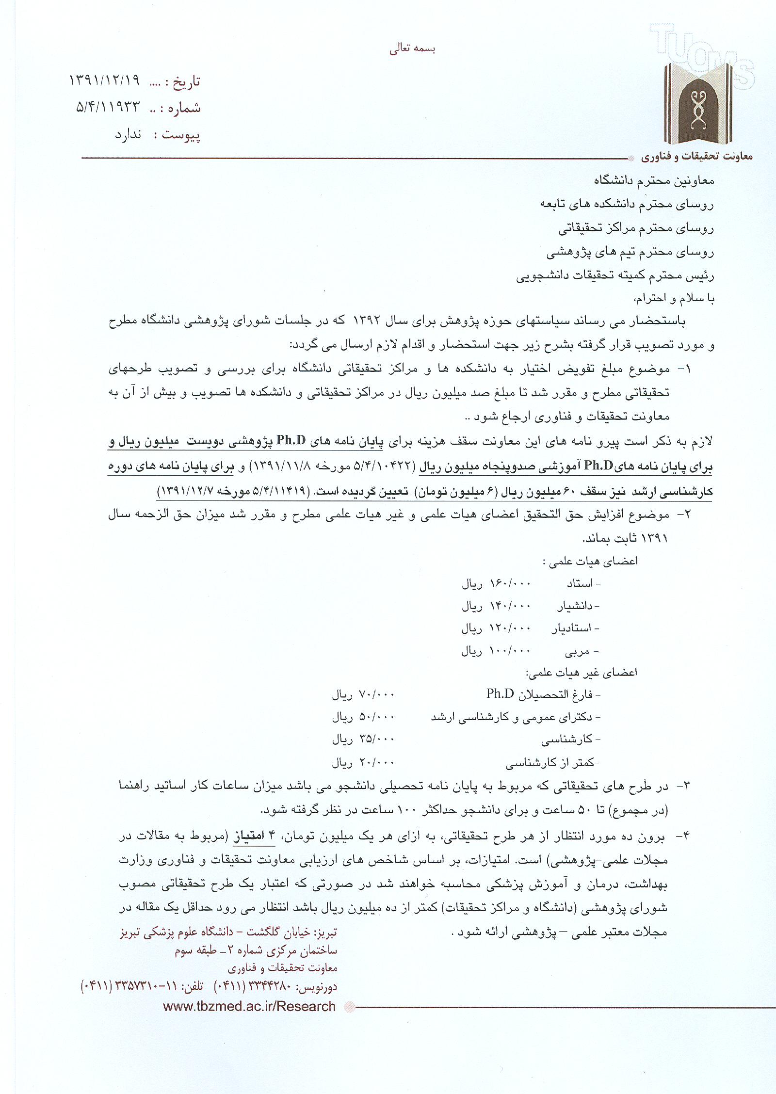 سياستگزاري معاونت پژوهشي دانشگاه براي سال 1392