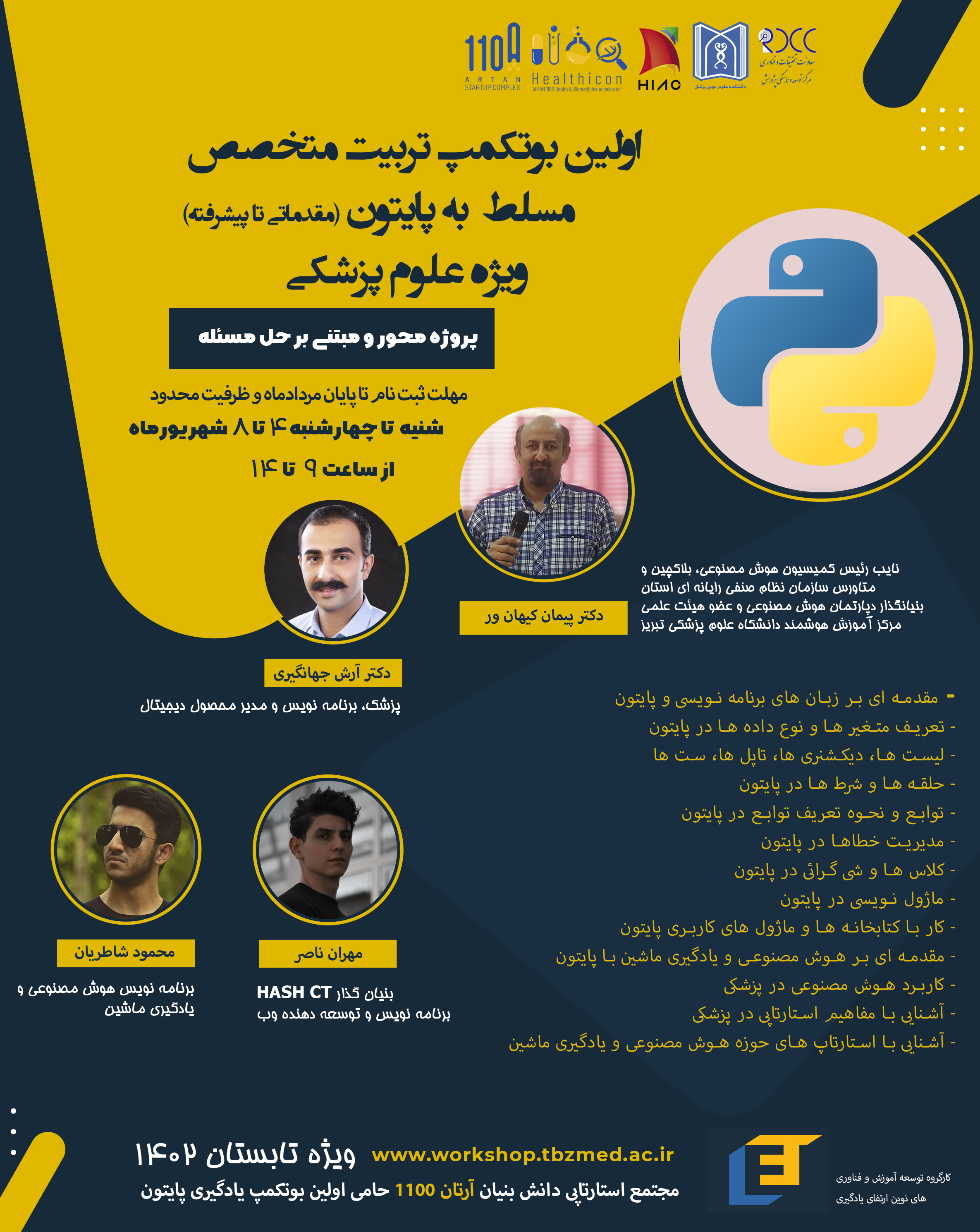 اولین بوتکمپ زبان برنامه نویسی پایتون با تأکید بر کاربرد هوش مصنوعی در علوم پزشکی (تخفیف ویژه) . کد خبر : 58720 کپی کلمات کلیدی : هوش مصنوعی یادگیری ماشین برنامهنویسی پایتون