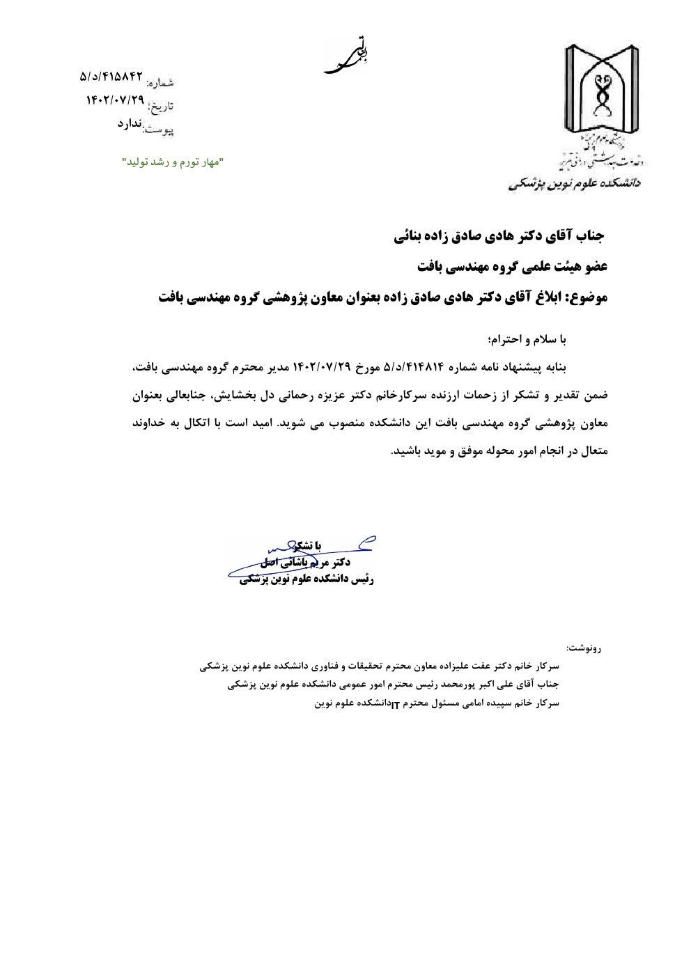 ابلاغ آقای دکتر هادی صادق زاده بعنوان معاون پژوهشی گروه مهندسی بافت . کد خبر : 58754 کپی کلمات کلیدی : ابلاغ معاون پژوهشی گروه مهندسی بافت پزشکی