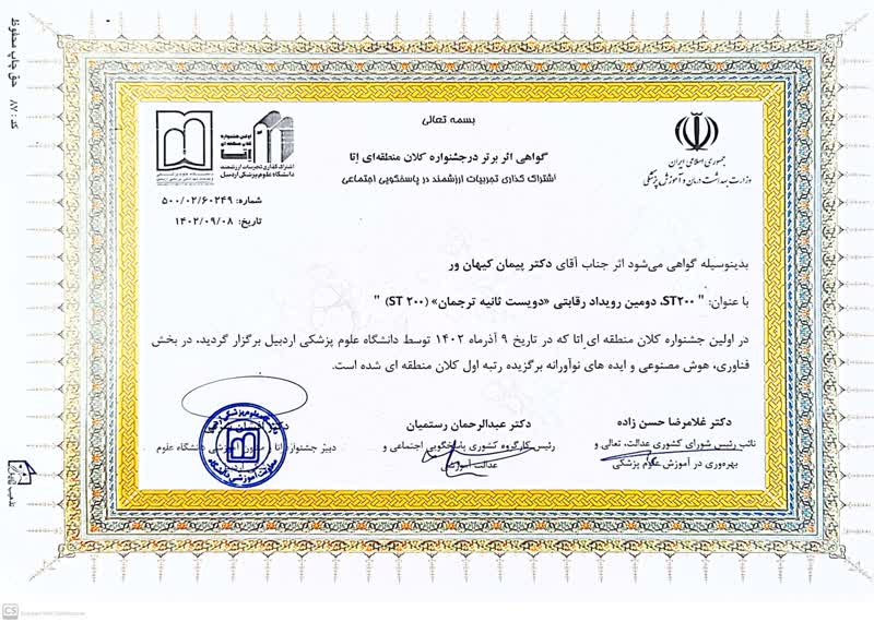 افتخار آفرینی آقای دکتر پیمان کیهان ور برای دانشکده علوم نوین پزشکی